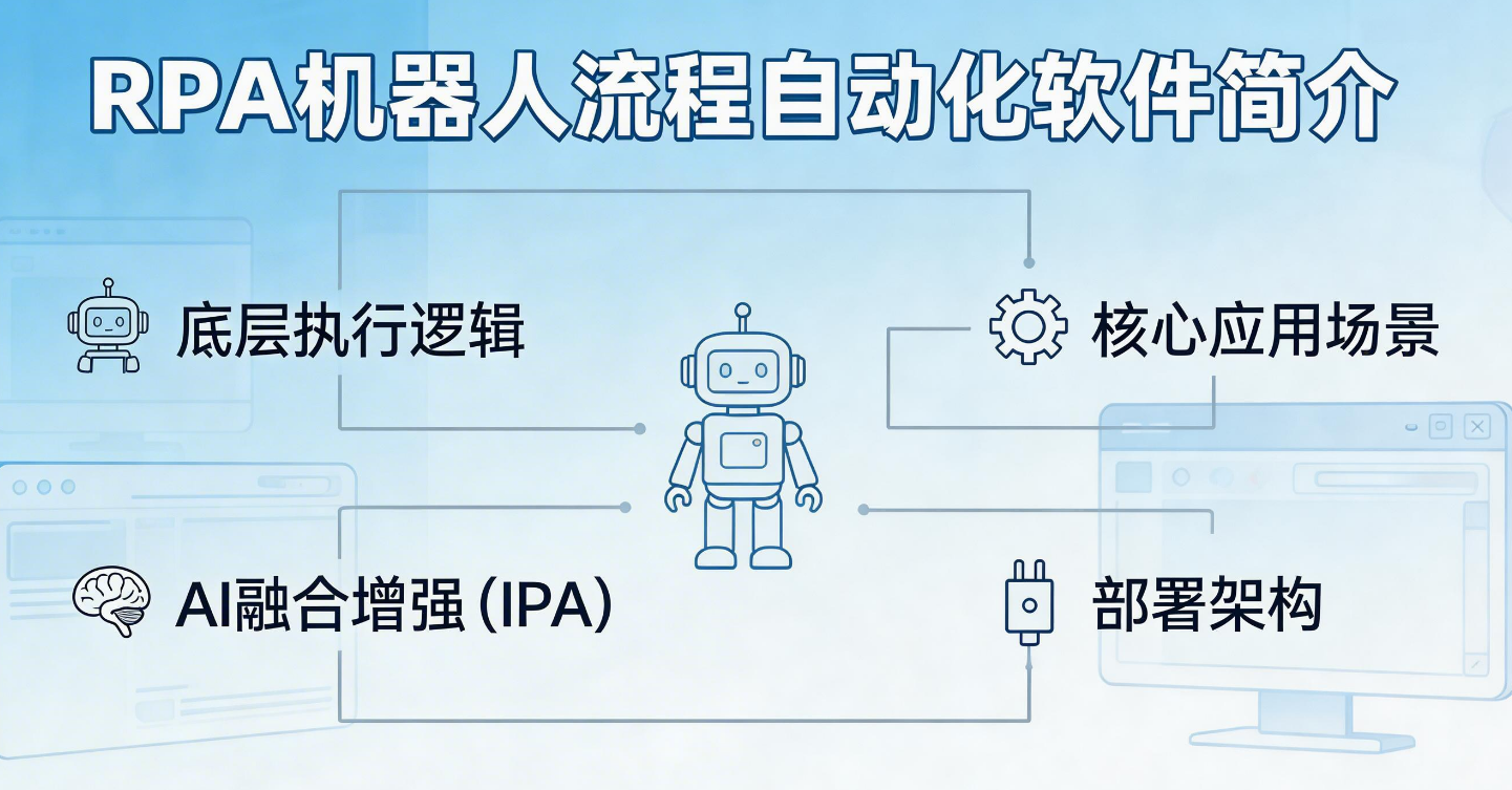 本文梳理了 RPA 软件的技术定义与底层架构。它通过模拟前端交互,解决了不同业务系统间的数据孤岛问题;在银行、电商等高频作业场景中展现了极高的物理执行效率;并通过与 OCR、NLP 等 AI 技术的融合,进一步突破了处理非标准、复杂业务的边界限制。